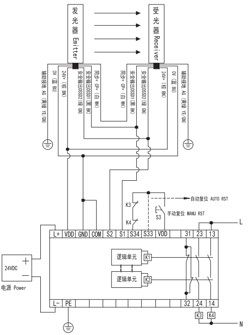 用于監控安全光幕(NPN,PNP輸出)和光電式雙手按鈕特點:1、可檢測輸入觸點的短路故障;2、具有自我監控的電路;3、工作狀態實時監測。Ple;安全類別:Cat.4;SIL3參數:復位模式手動或自動輸出觸點2N/O,1N/C工作電源DC24V功耗3W平均無危險故障時間94a切換容量AC-15,5A/250V;DC-13,6A/24V釋放緩沖時間99%防護等級IP50...