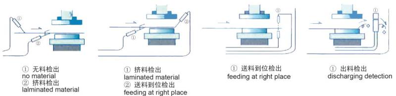 在沖床自動沖壓加工過程中,預防模具損壞和不良品的產生。具有擠料(波動)檢出、無料(材料末端)檢出,送料到位檢出、出料檢出等多種監(jiān)測功能。